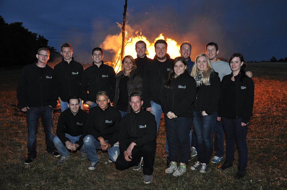 Zusammen mit Bezirksrat Rudi Wieselthaler erläuterte der Stv. Schriftführer der Landjugend Oberlaa, Florian Heger, den zahlreichen Gästen den Ursprung und die Tradition des Feuers. Pünktlich zur Dämmerung um 21 Uhr entzündeten die Mitglieder der Landjugend Oberlaa zusammen mit einigen Kindern den großen Holzkegel. Eine meterhohe Stichflamme sorgte zunächst für Staunen und Zurückweichen der zahlreich erschienenen Gäste, aber als der Kegel im Anschluss kontrolliert, unter den Augen der Freiwilligen Feuerwehr Kledering, abbrannte, rückten alle etwas näher ans Feuer heran und genossen den Anblick der lodernden Flammen in netter Gesellschaft bei Speis und Trank. Bei Lagerfeuer-Feeling fand das Fest schließlich gegen Mitternacht einen gemütlichen Ausklang.