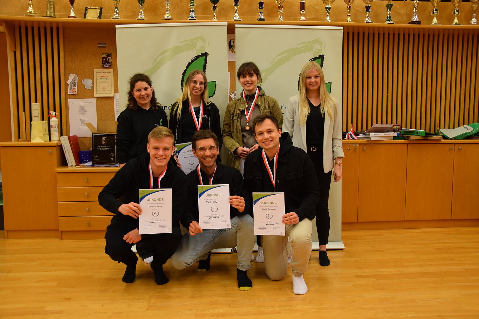 Am Ende des Tages durfte sich das Team bestehend aus Sophie und Christoph Berger sowie Kathrin und Tobias Tschipan über eine Goldmedaille freuen. Beim Redewettbewerb konnte Paul Uitz die Jury überzeugen und sicherte sich mit einer Darbietung zum Thema „Taschenrechner und Google – Ist Kopfrechnen, Allgemeinbildung und Lernen überflüssig?“ den Landessieg.