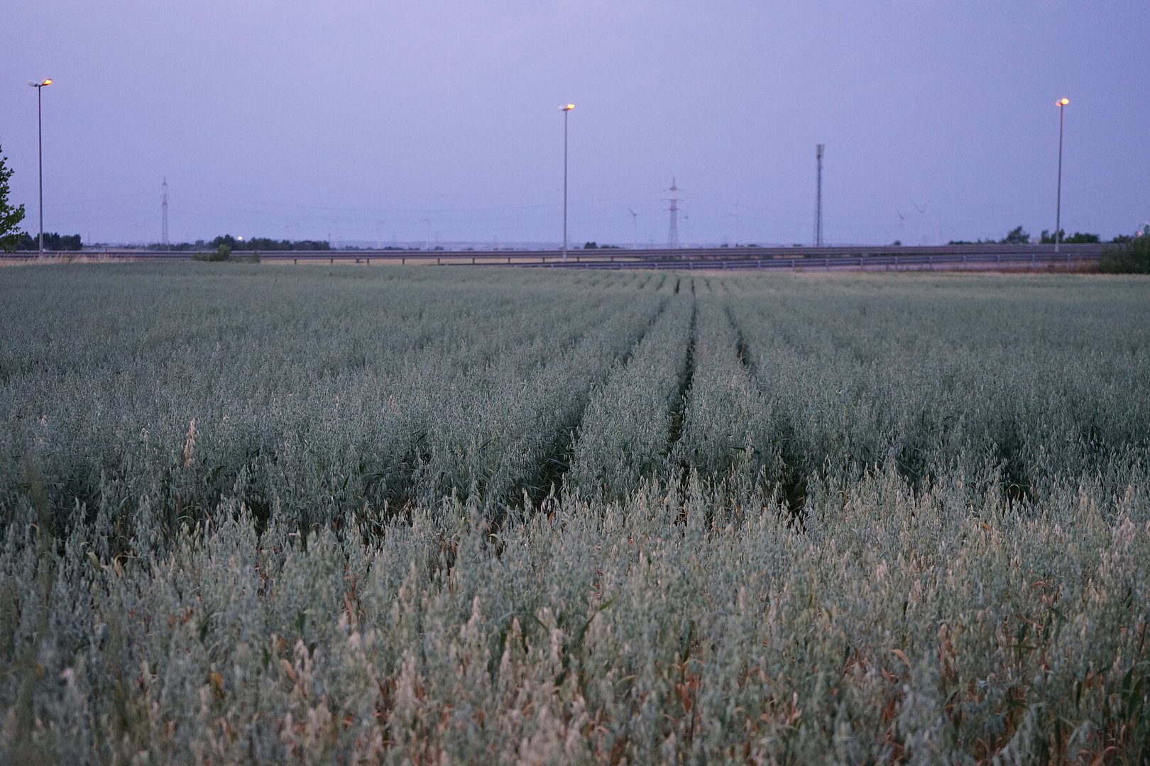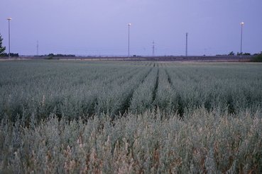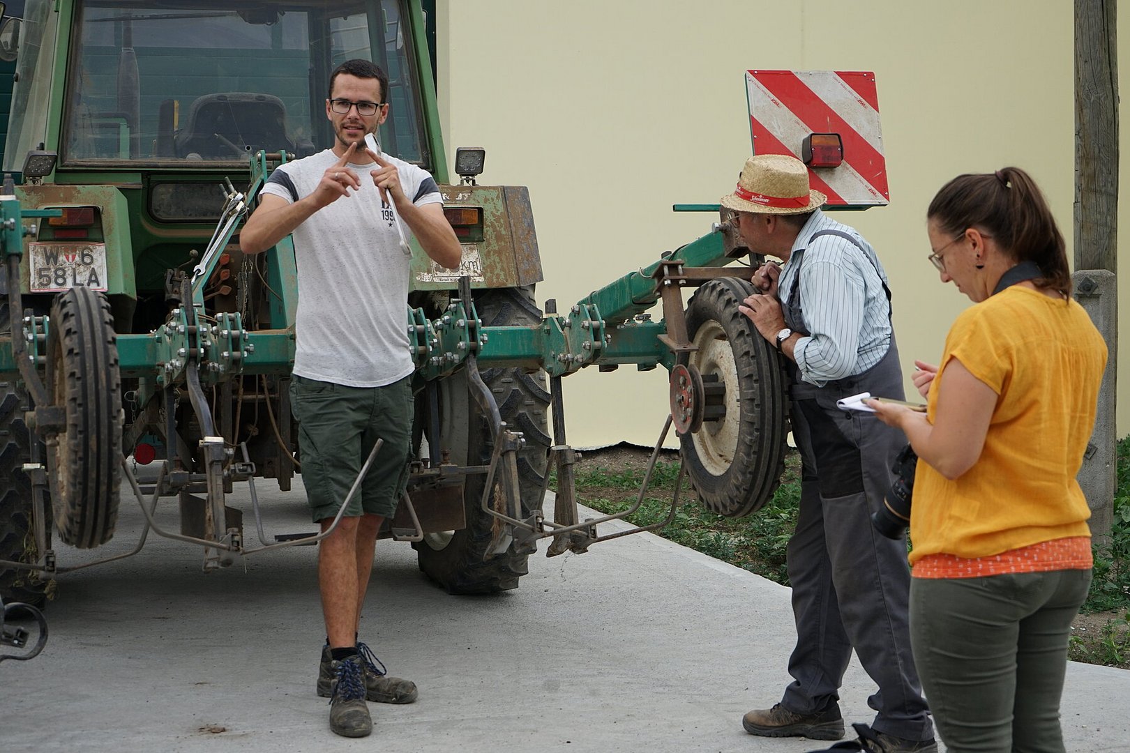 Im Anschluss folgten kurze Autofahrten in der Umgebung zu einigen seiner weiteren Dammkulturen: Zuckererbsen, Gerste, Körnermais und Ölkürbis.