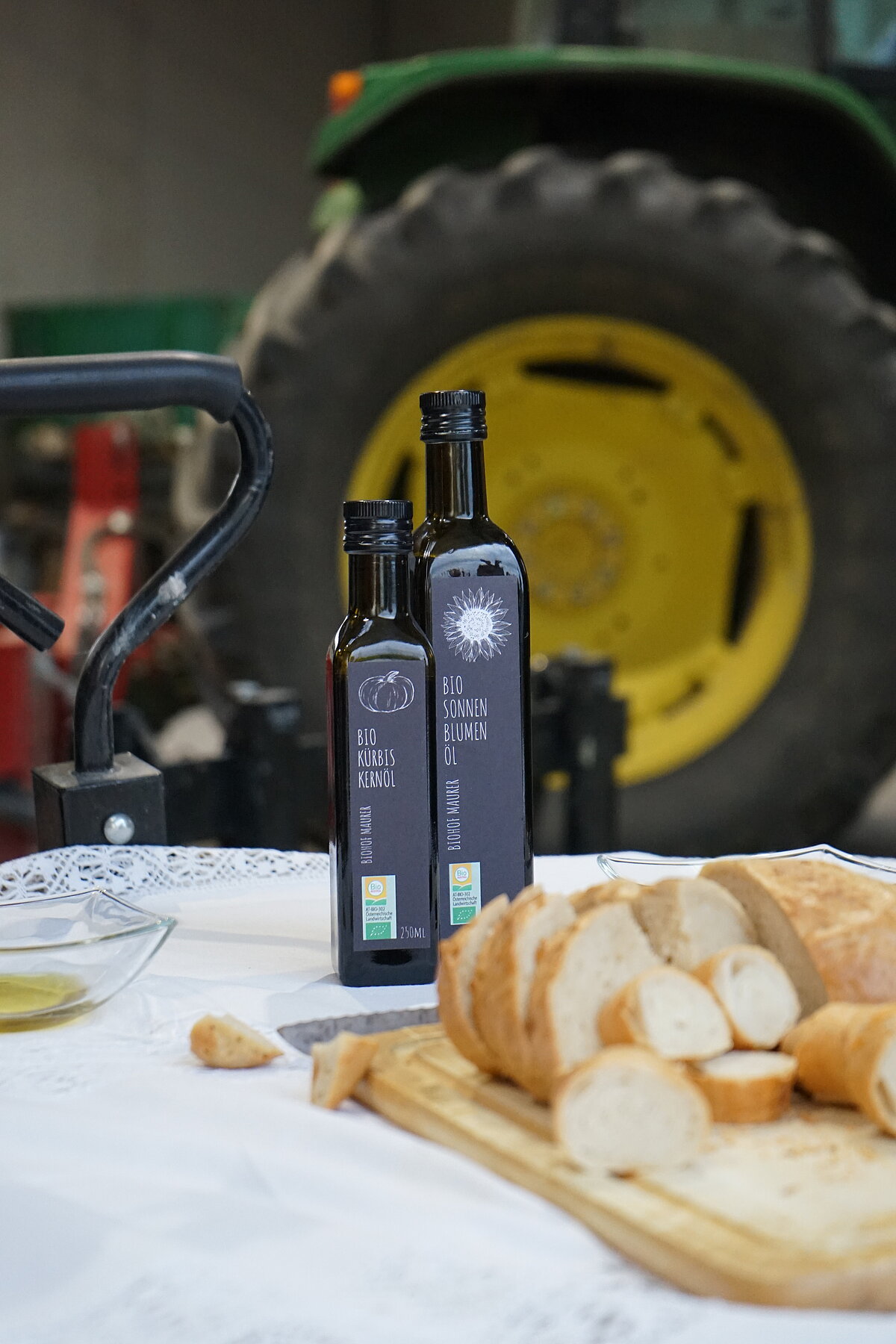 Nach einem Überblick über seinen Betrieb, die Visionen und sein Zukunftskonzept bekamen wir die Gelegenheit, die erste Dammkultur (Sonnenblume) gegenüber dem Hof kennenzulernen. Aus den Sonnenblumen fertigt Andreas Sonnenblumenöl an, das gemeinsam mit Kürbiskernöl verkostet werden konnte.